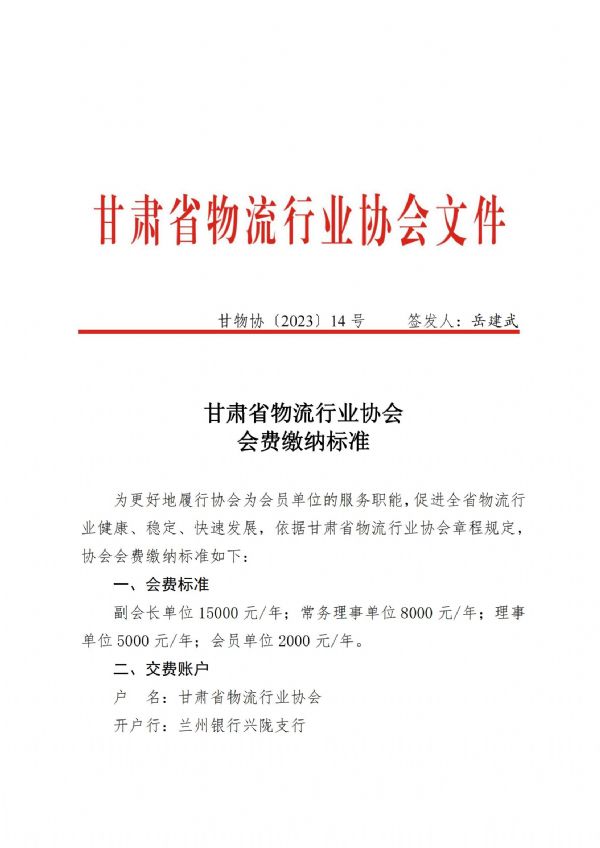 甘肅省物流行業(yè)協(xié)會會費(fèi)繳納標(biāo)準(zhǔn)