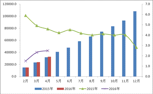 ----電商物流需求平穩增長。1-4月,與民生相關的單位與居民物品物流總額保持較快增長,同比增長46.7%,增速比上年同期提高1.1個百分點;于此同時,電子商務、網上零售等新興業態保持快速增長,實物商品網上零售額比上年同期增長25.6%,增速比一季度略有回落,但高于社會消費品零售總額增速15.5個百分點,單位與居民物品物流需求增長對物流需求規模的貢獻穩步提升。