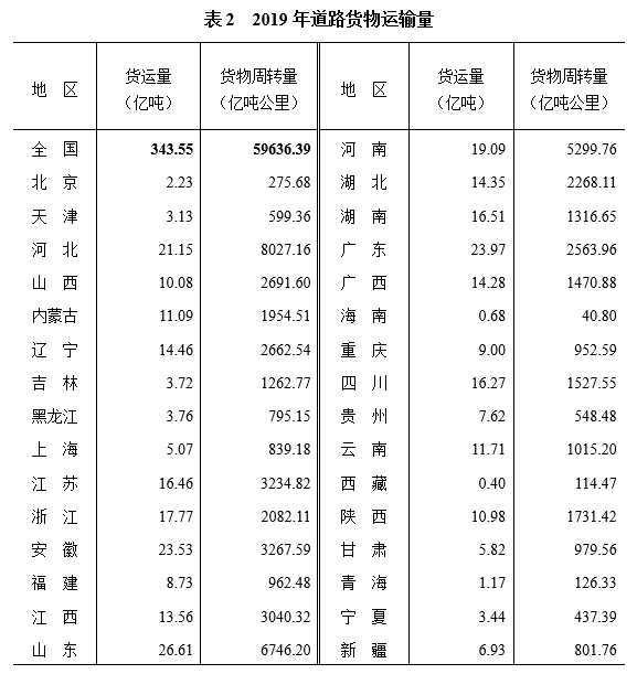交通運(yùn)輸部:2019年道路貨物運(yùn)輸量專項(xiàng)調(diào)查公報(bào)