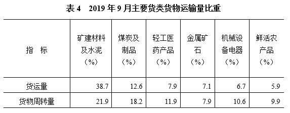 貨運(yùn)量的主要貨類構(gòu)成中,“礦建材料及水泥”占比最高,為38.7%;其次是“煤炭及制品”,占比12.6%;“輕工醫(yī)藥產(chǎn)品”“金屬礦石”“機(jī)械設(shè)備電器”“鮮活農(nóng)產(chǎn)品”等貨類次之,占比分別為7.9%、7.1%、6.7%和5.9%。