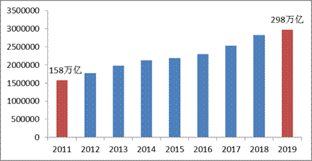 2016-2019年規(guī)模以上工業(yè)企業(yè)流動資產(chǎn)情況