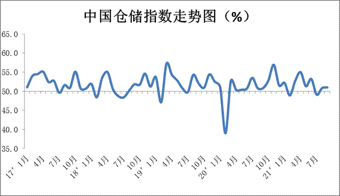 中國物流與采購聯合會發布的2021年9月份中國物流業景氣指數為54%,較上月回升4.5個百分點;中國倉儲指數為51%,較上月回升0.2個百分點。