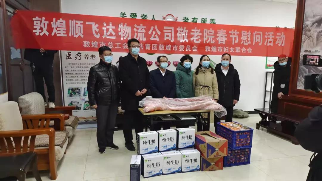 1月20日下午,協(xié)會(huì)副會(huì)長(zhǎng)單位敦煌順飛達(dá)物流有限公司聯(lián)合敦煌市總工會(huì)、團(tuán)市委、市婦聯(lián)等單位,走訪慰問(wèn)敦煌市陽(yáng)光老年公寓、社會(huì)福利院等養(yǎng)老服務(wù)機(jī)構(gòu),送去了牛奶、水果、肉類(lèi)等慰問(wèn)品和新春的祝福。