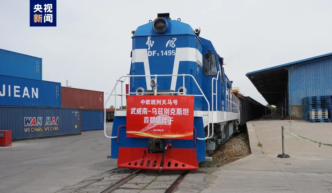 26日14時30分許,由甘肅(武威)國際陸港組織發運的2023年首列出口班列從武威南站駛出,發往烏茲別克斯坦首都塔什干。