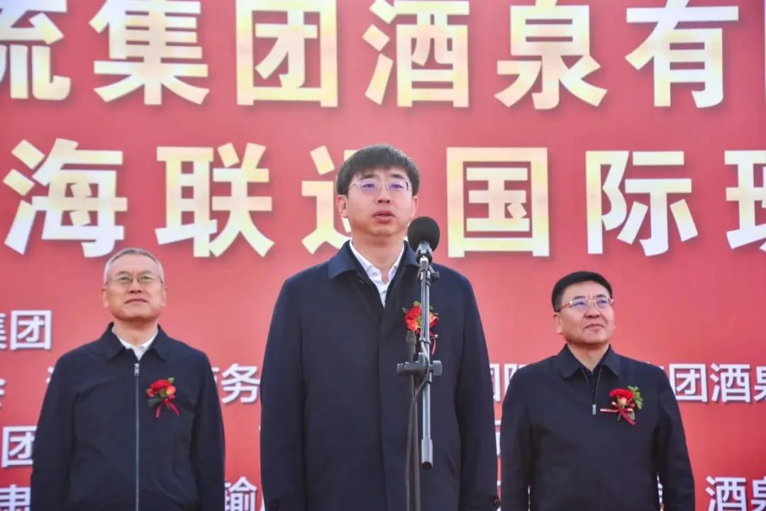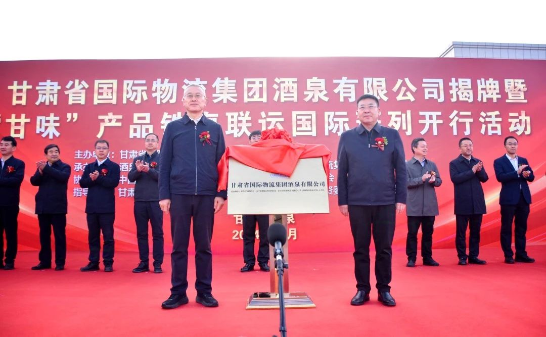 岳建武會長出席甘肅省國際物流集團酒泉有限公司揭牌暨“甘味”產(chǎn)品鐵海聯(lián)運國際班列開行活動